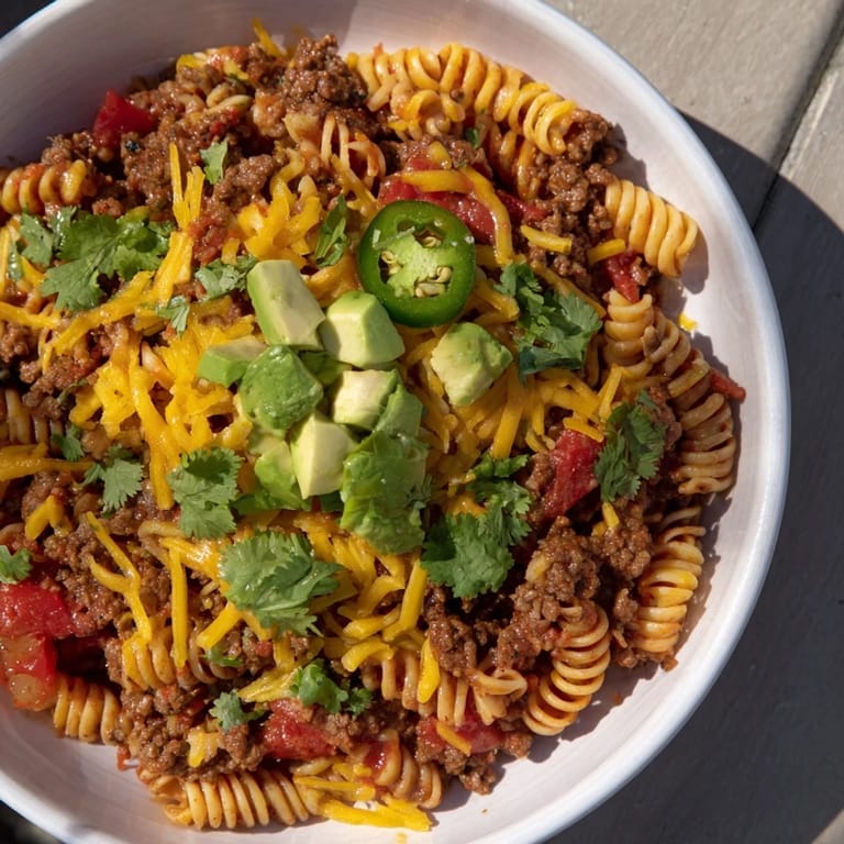 I remember my neighbor peeking over the fence while I was stirring this, asking what smelled so good. She came back with a bowl ten minutes later and admitted she'd never thought to put taco seasoning on pasta before. That's when I realized this wasn't just my Tuesday rescue meal—it was something that genuinely makes people happy in the simplest way.