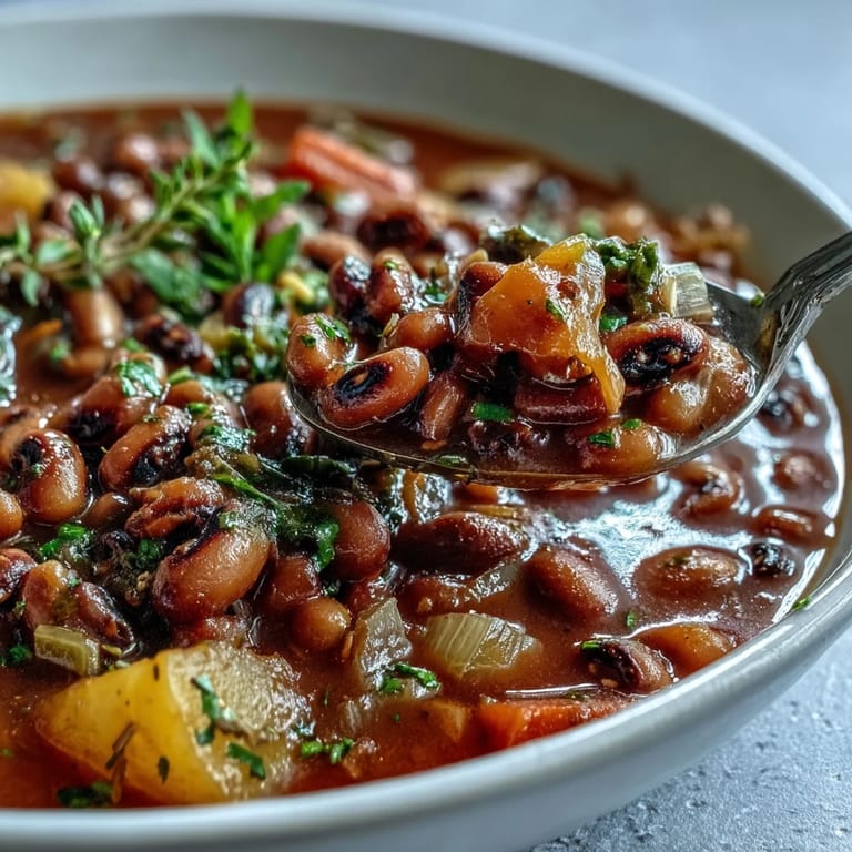Save to Pinterest There's something about stirring a pot of black-eyed peas that slows everything down. Years ago, I watched my neighbor make this stew on a particularly gray afternoon, and I was struck by how the kitchen filled with warmth before we'd even tasted a spoonful. The smell of sweet onions and thyme drifting through the air felt like an invitation to slow down, to pay attention. I've made it dozens of times since, and it never fails to feel like coming home.