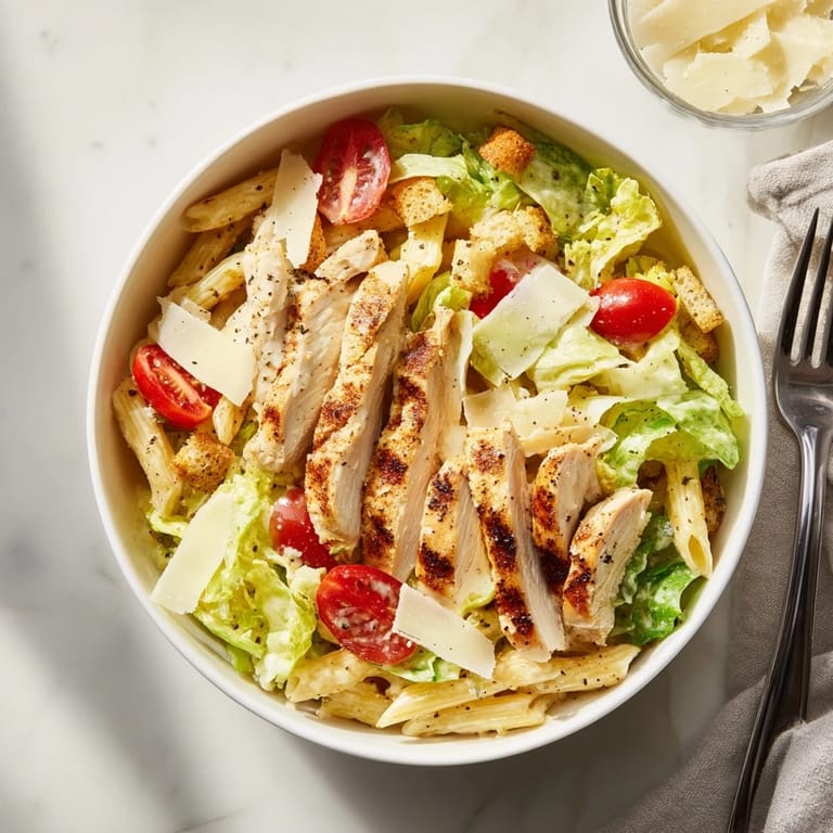 Save to Pinterest The smell of grilled chicken hitting a hot skillet still takes me back to tiny apartment kitchens where counter space was basically a suggestion. My roommate used to laugh at how I would orchestrate these elaborate bowls while literally leaning against the fridge for prep room. Something about tossing pasta with crisp romaine and that creamy Caesar just works whether it is Tuesday night takeout energy or pretending you have your life together on a Sunday.