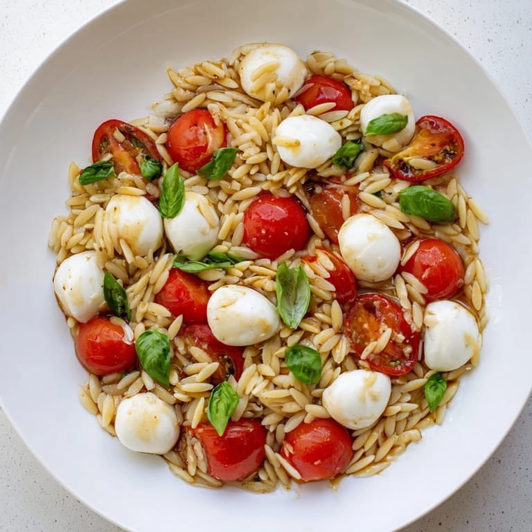 Save to Pinterest There's something about summer that makes you crave simplicity, and this Caprese Orzo Salad arrived on my kitchen counter on one of those humid afternoons when the farmer's market felt like the only place to be. I picked up a handful of cherry tomatoes still warm from the sun, some creamy fresh mozzarella, and a bunch of basil that perfumed my entire bag. That night, instead of cooking something elaborate, I boiled orzo and threw it together with the vegetables and a quick dressing, and it became the kind of dish that made everyone at the table pause and ask for the recipe. It's become my go-to when I need something that tastes like summer but doesn't require fussing.