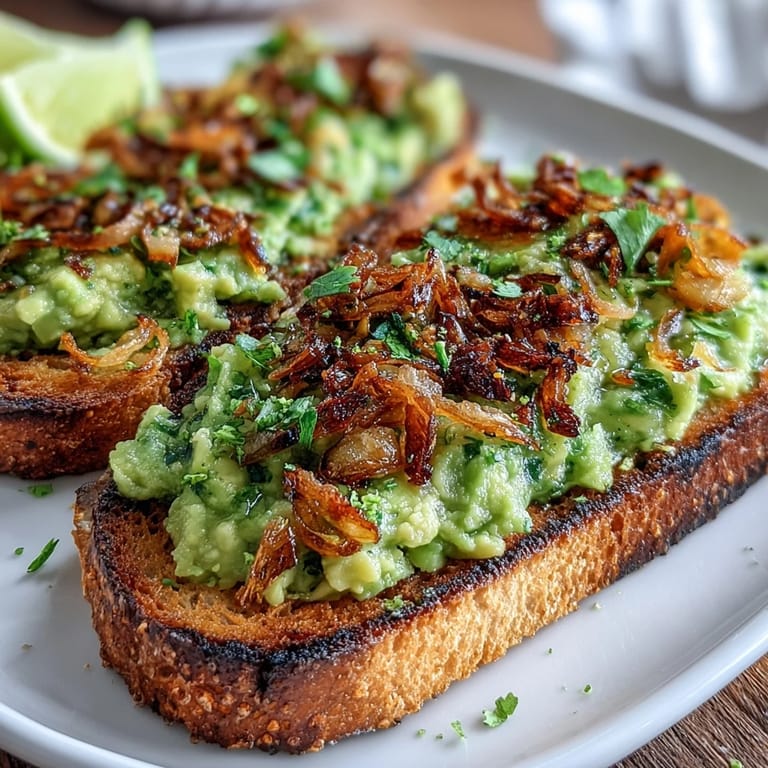 Save to Pinterest There's something about the way lime zest catches the light on a plate that made me fall for this toast. My neighbor brought over avocados from her tree one afternoon, and I found myself rummaging through my pantry for anything that would sing alongside them. That's when the chilli-lime dressing came to life, and honestly, crispy shallots were the final piece I didn't know I needed until that first bite.
