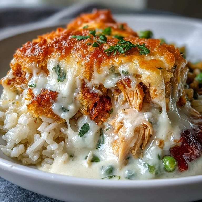 Save to Pinterest There's something about a casserole that transforms a kitchen into pure comfort. One Wednesday evening, I was standing in front of my open fridge, staring at leftover rotisserie chicken and a half-empty box of rice, when it hit me—what if I combined all those creamy soup shortcuts with garlic and cheese into something that actually tasted homemade? Two hours later, my kitchen smelled like a Italian-American dream, and I understood why casseroles have stayed in family rotation for generations.