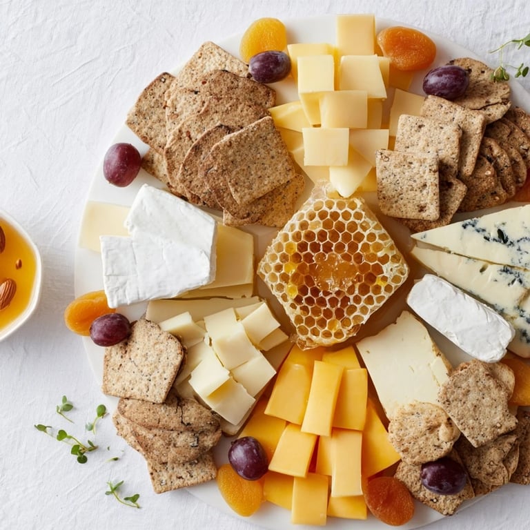 The beauty of this board is that it's a conversation between flavors as much as shapes. I learned through trial and error that you want at least three textural types: one firm and crumbly (like aged cheddar), one creamy and yielding (Brie), and one with personality (blue or goat). The honeycomb doesn't compete with flavor—it supports it, bridging sweet and savory. Season matters too; in summer I lean toward lighter, fresher cheeses, while winter calls for more assertive aged ones. Don't get locked into my exact lineup. What matters is balance.