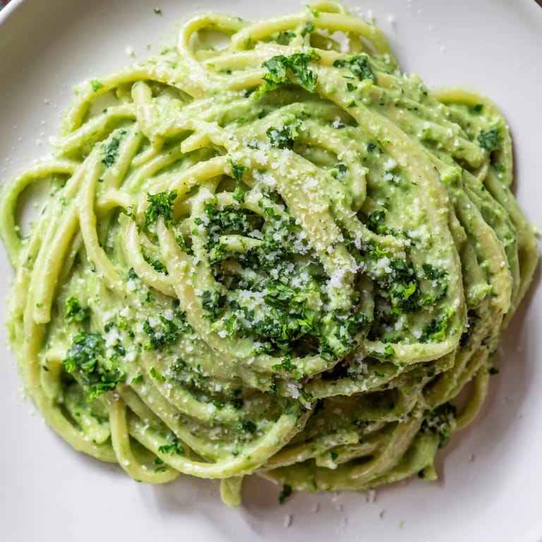 Save to Pinterest There's a moment right after you toss the hot pasta with the sauce when the whole kitchen smells like fresh cut grass and herbs and something almost floral. That's when I know it's going to be good. My kids, who normally avoid anything green, will actually eat this without complaint. That alone feels like a small miracle.