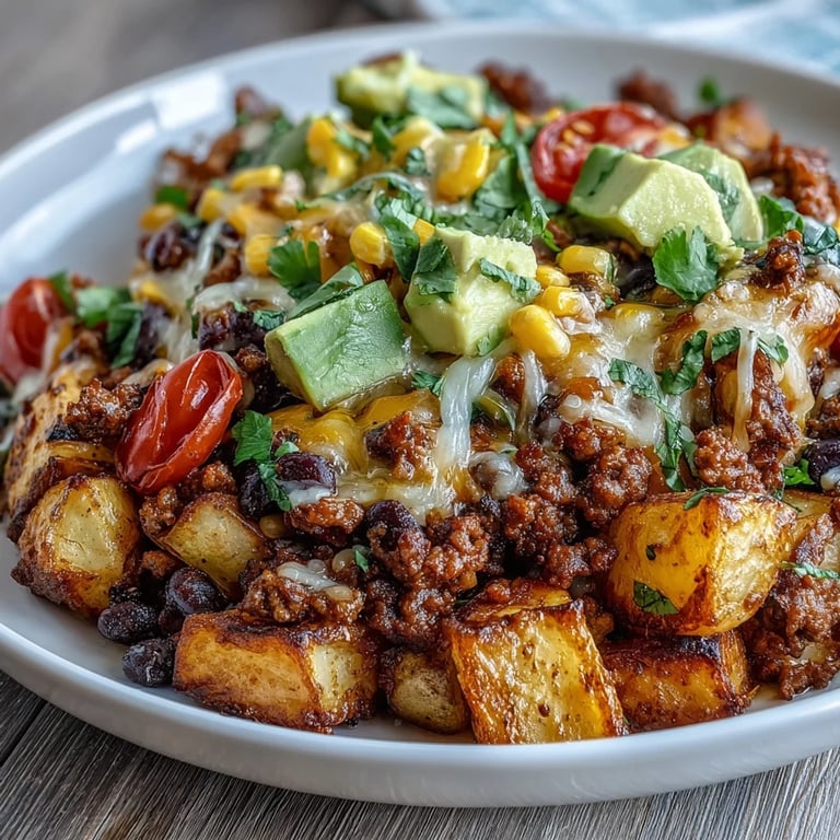 Sweet potatoes work beautifully here and add a nice color contrast. Sometimes I use extra beans and skip the meat entirely for a vegetarian version that still feels substantial. The roasted potato base is what really makes it special.
