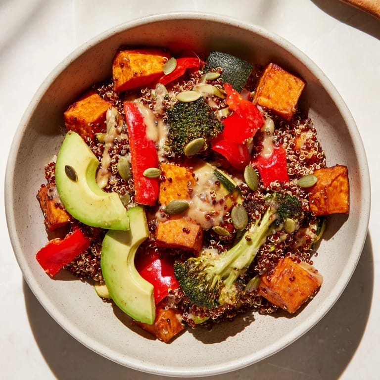 Raw vegetables are fine, but roasting them transforms them into something completely different—caramelization happens, natural sugars concentrate, and suddenly you have depth of flavor instead of just nutrition on a plate. The sweet potato becomes almost creamy inside with crispy edges, the bell pepper sweetens and softens, and even the broccoli gets a slightly charred, irresistible crispness. This is why this bowl doesn't feel like health food; it tastes like actual indulgence.