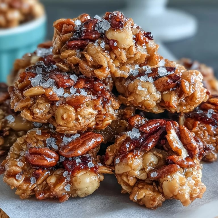 Save to Pinterest One quiet Sunday morning, I was standing in my kitchen waiting for coffee to brew when the smell of something warm and toasty drifted up from nowhere—a memory, really, of my grandmother's kitchen and the way she'd make granola in small batches, always sneaking a pinch of salt into the honey before drizzling it over oats. That moment sparked something, and I decided to chase that feeling with my own version. What emerged was this salted honey granola, the kind that tastes like golden afternoon light and feels impossibly simple to make.