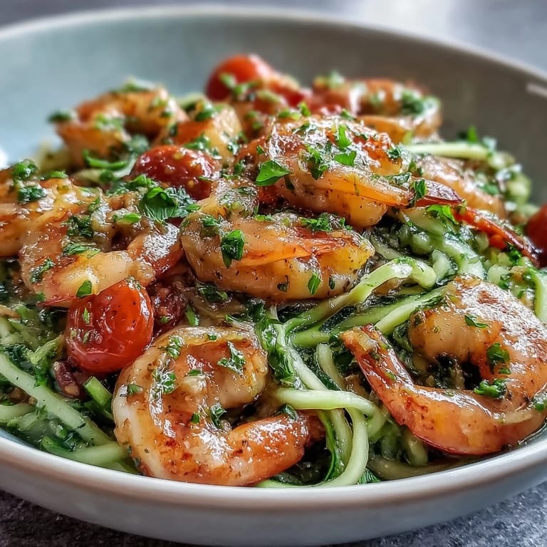 Save to Pinterest One Tuesday evening, I was standing at the farmer's market watching someone spiralize zucchini with this effortless flick of the wrist, and something clicked. I'd been chasing that restaurant-quality shrimp scampi taste without the heavy cream and pasta guilt, and suddenly the answer was right there in front of me—bright green ribbons that could hold a silky lemon sauce just as beautifully as any noodle. That night, I cooked my first version, and the kitchen filled with the kind of garlic-and-lemon perfume that makes you forget you're eating something technically "healthy."