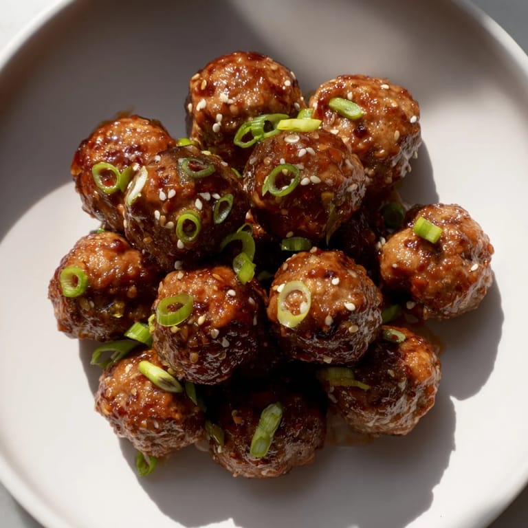 - Arrange meatballs on a serving platter. Sprinkle with sesame seeds and sliced green onions. Serve warm, with toothpicks if desired.