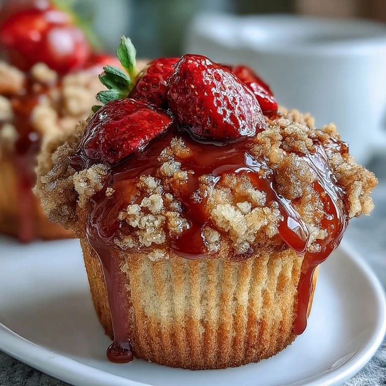 Save to Pinterest My neighbor dropped off a basket of strawberries one June morning, more than we could eat fresh, and I found myself standing in the kitchen wondering what to do with them before they turned. That's when I decided to bake, and these muffins became the answer—tender crumb studded with sweet fruit, crowned with buttery crumbles that catch the oven's heat just right. Now I make them whenever strawberries are at their peak, and somehow the kitchen fills with this golden warmth that makes everything feel intentional.
