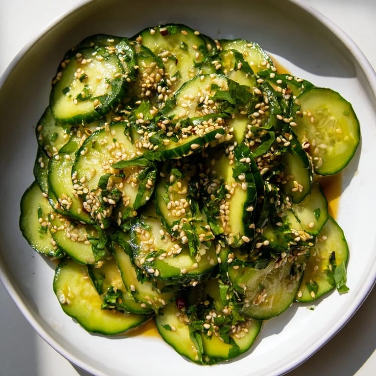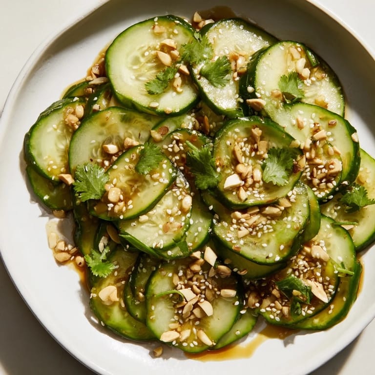 Save to Pinterest There's something about shaking a jar that feels like pure kitchen alchemy. One humid afternoon, I was hunting for something light to eat with leftover grilled chicken, and I found myself staring at two oversized English cucumbers that had been lounging in my crisper drawer. Rather than slice and toss like I'd done a thousand times before, I grabbed an empty mason jar, threw in the cucumbers and a few spring onions, and mixed up a dressing on a whim—rice vinegar, a drizzle of sesame oil, and a punch of fresh ginger. The real moment came when I screwed the lid tight and shook it like I was making a cocktail. Thirty seconds of vigorous shaking and the whole thing transformed into something that tasted like it had been sitting in the fridge for hours, even though I'd just made it.