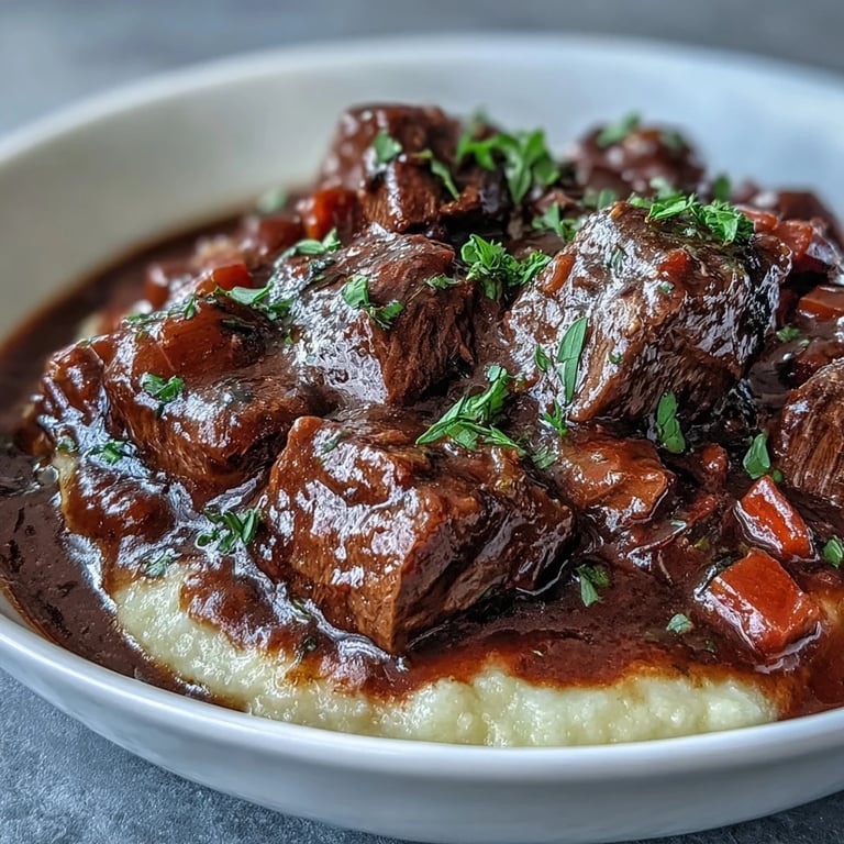 This stew tastes even better the next day, the flavors deepen and settle overnight in the fridge. Reheat it gently on the stove, adding a splash of stock if it's thickened too much. The polenta doesn't store as well, it firms up and loses its creaminess, so I usually make it fresh each time or loosen leftovers with milk and butter over low heat.