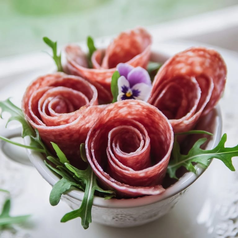 Save to Pinterest I was arranging flowers for a dinner party when my grandmother pulled out her vintage porcelain teacups and asked if I'd ever thought about serving savory food in unexpected vessels. That simple question sparked an idea that turned into these meat roses—elegant, playful, and utterly charming. The first time I rolled the salami into a spiral, my hands weren't quite sure of the motion, but the moment it stood upright and opened like a bloom, I knew I'd stumbled onto something special. What started as an experiment became the dish people still ask me to bring.
